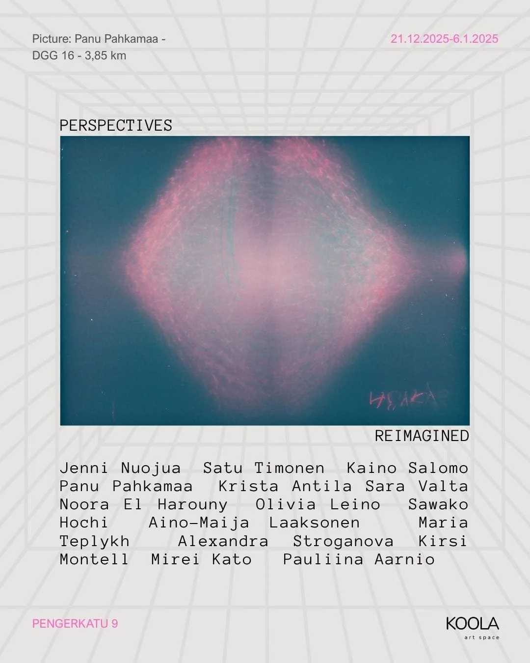 Perspectives ReimaginedKOOLA window 21.12.2025-6.1.202 Exhibition visible 24/7 at Pengerkatu 9, Helsinki Meet the artists (updating)